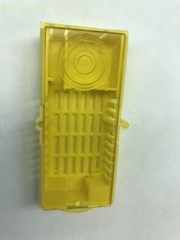 Пластиковая клеточки для пересылки маток, производства Лысонь, Польша в этом году были 2-х цветов: желтые и оранжевые.