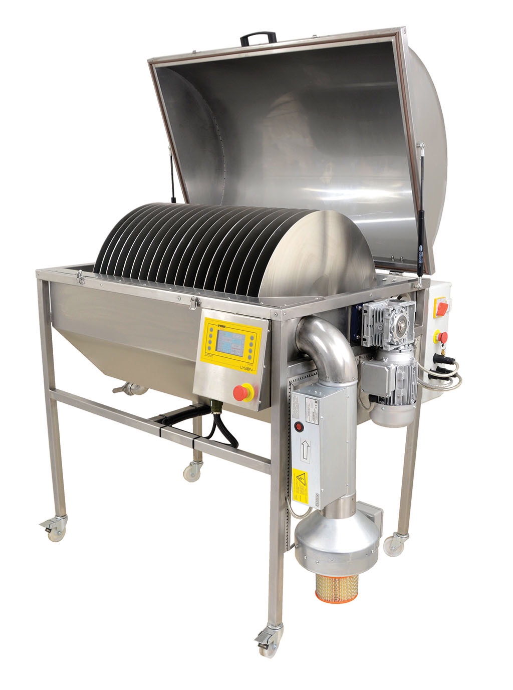 Осушение меда выполняется тогда, когда содержание воды в меде превышает 18-20% из-за его низкого качества или слишком раннего сбора. Высокое содержание воды в меде снижает его срок хранения и повышает риск его расслоения и брожения даже при хранении его в низкой температуре. Оборудование предназначено для устранения излишка воды из меда путем ее выпаривания. Внутрь подается нагретый воздух, который поддерживает сухой микроклимат, благоприятный для выпаривания воды из меда. Процесс осушения ускоряют размещенные внутри оборудования вращающиеся диски. Обслуга проста и интуитивна. Питание оборудования — 230В. В него вливаем жидкий или полу-жидкий мед до уровня, обозначенного внутри. По окончании осушения необходимо слить мед из оборудования.