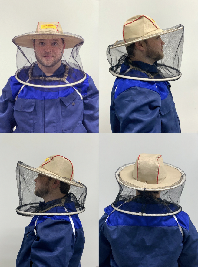 Сетка лицевая предназначена для защиты лица пасечников от возможных укусов пчел. Обеспечивает надежную защиту глаз, лица и шеи пасечника. Шляпа + круговая сетка с широкими полями, что увеличивает защиту от ужаливаний лица и головы при работе на пасеке. Горловина затягивается на резинку. Шляпа имеет хорошие показатели износоустойчивости и долговечности.зСетка пошита из ткани двунитка ( 100% хлопок), грета (смесовая материя состоящая из волокон хлопка 53-55% и полиэстера 47-45%), фатин. Шляпа на голове плотно фиксируется резинками под подмышками.